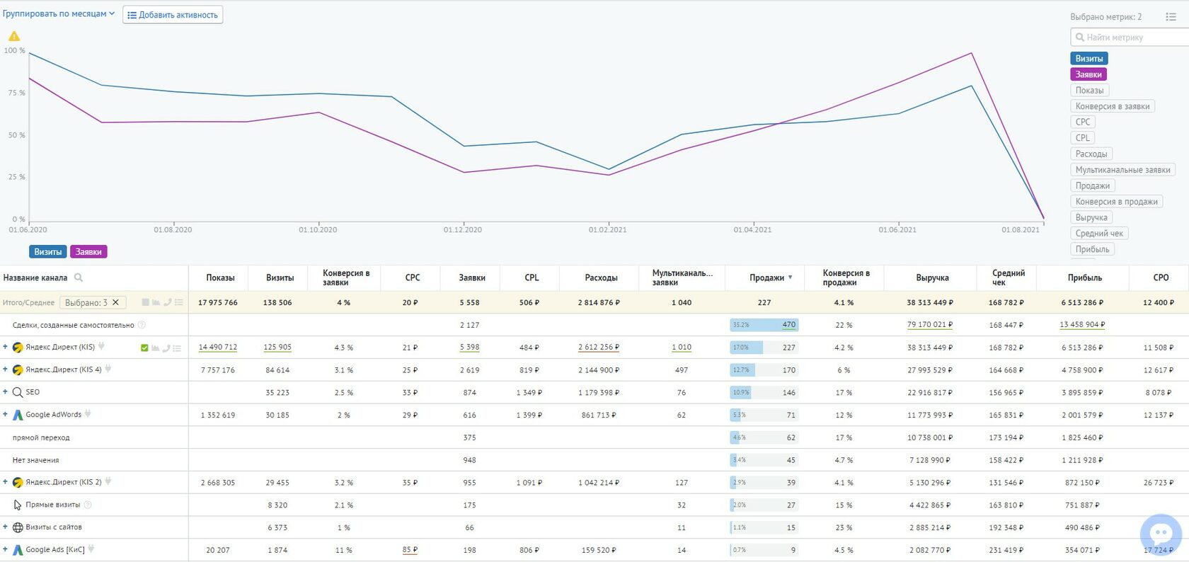 Настроенная система сквозной аналитики работала некорректно, данные по продажам и стоимость клиента отследить было сложно.