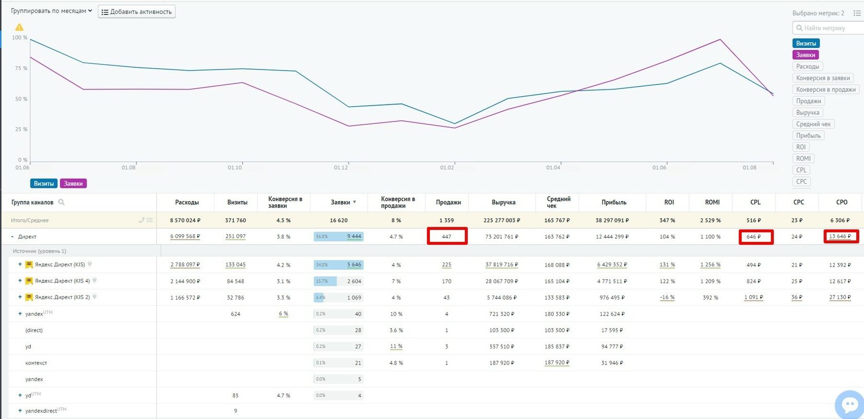 После обязательной подготовки перешли к настройке рекламы в Яндекс.Директ и VK под запросы с самой высокой маржой. Нас интересовал именно тот сегмент ЦА, которому требовались дополнительные услуги. Все для того, чтобы один лид приносил как можно больше денег.
